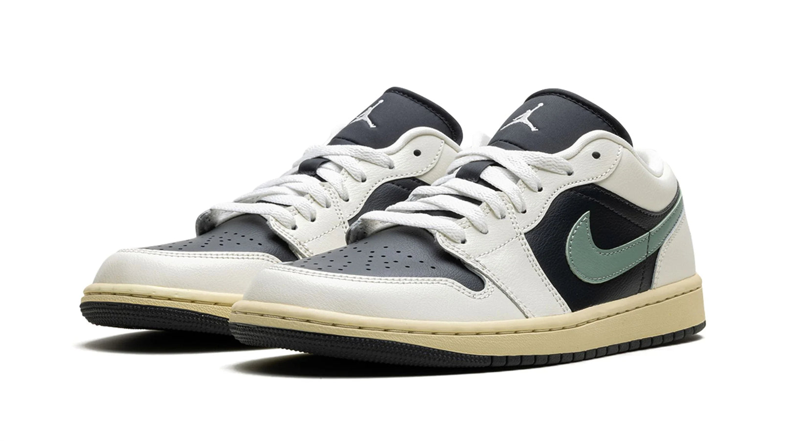 The Women's Jordan 1 Low "Jade Smoke" is a women's-exclusive colorway of the retro basketball shoe that is reminiscent of Travis Scott's collaborative version of the model. Inspired by Travis Scott's Jordan 1 Low “Olive.” the “Jade Smoke” has a similar color block as the hip-hop star's take on the model. Specifically. the upper is complete with an Anthracite-colored leather base and Sail leather overlays. A Jade Smoke leather Swoosh can be found on either side of the shoe. while a white Jumpman appears on the tongue. A Sail rubber midsole completes the look. Release date: Spring 2024