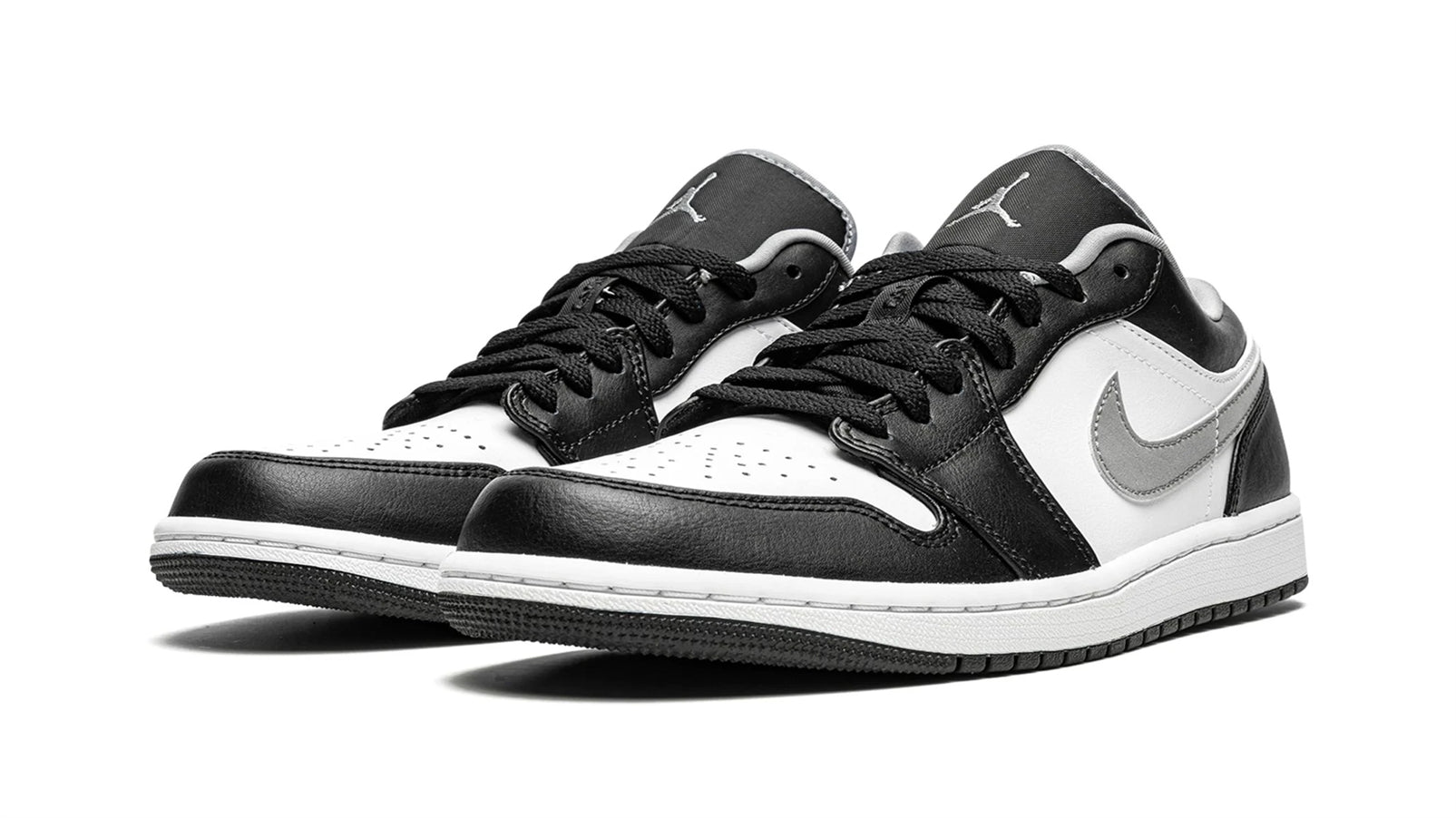 The Jordan 1 Low “Black/Particle Grey” is a versatile look for the low-top version of Michael Jordan's first signature shoe. The transcendent Jordan 1 is one of the greatest performance and lifestyle sneakers ever created by Nike and Jordan Brand due to its casual design. comfort and. of course. connection to the greatest basketball player of all time. The “Black/Particle Grey” features white leather on the perforated toe and mid-panel. Contrasting black leather can be found on the forefoot. eyelets. collar. and heel. A Particle Grey leather Swoosh appears on both sides and a grey “Wings” logo is embroidered on the back of the shoe. A Particle Grey Jumpman is stitched onto the black nylon tongue and black “23” branding is embroidered on the lace overlay incorporated into the design of the black shoe laces.