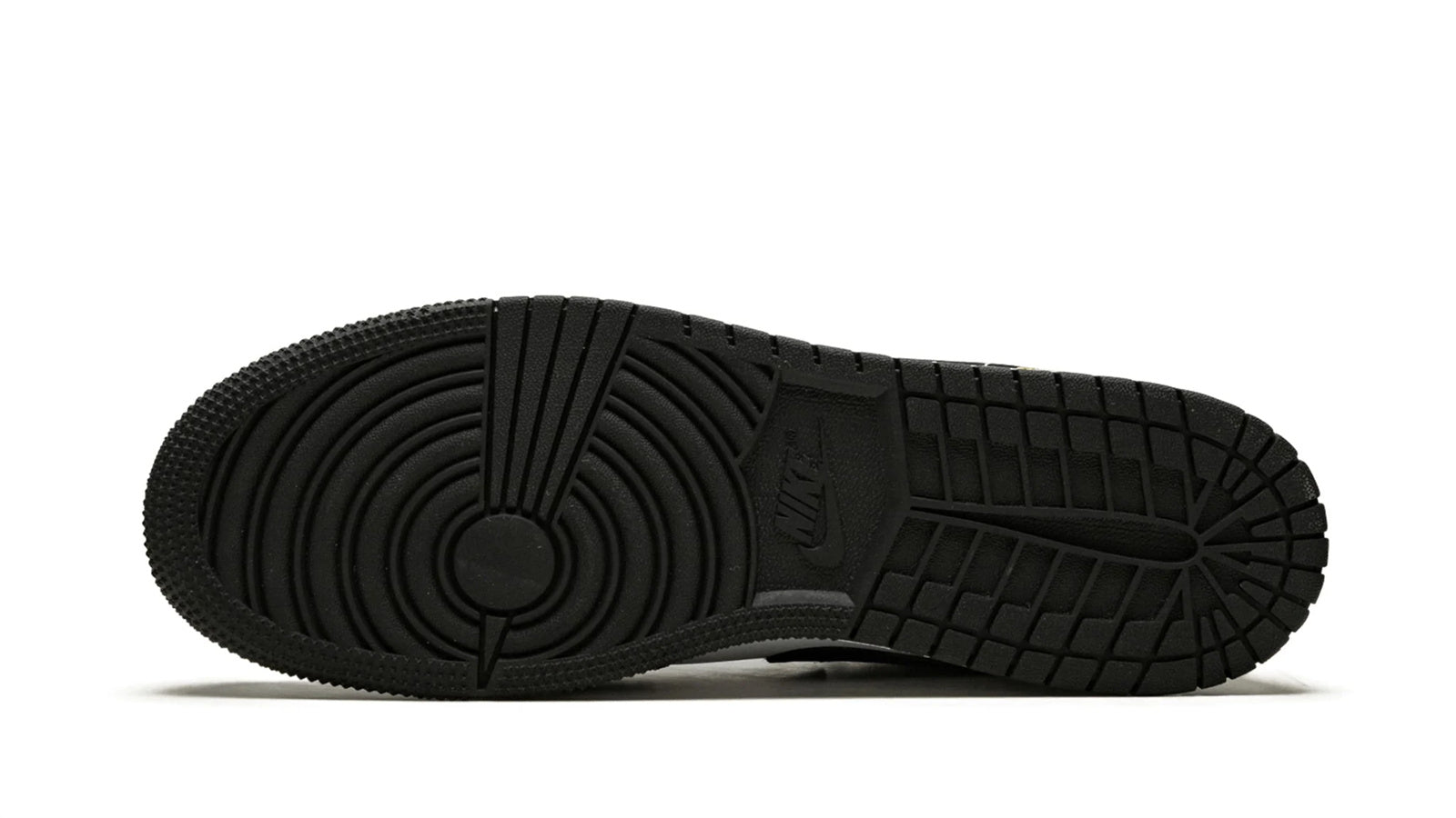 The Jordan 1 Low “Gold Toe” is a special release of the low-top Jordan 1 that borrows a popular colorway from the original high-top. The metallic gold. white. and black patent leather construction that first appeared on the Jordan 1 High in 2018 is mirrored on this Jordan 1 Low from 2019. Unlike the high-top's asymmetrical color blocking. this low features the same look on the lateral and medial sides. Each pair is completed with a tonal Jumpman logo embroidered on the tongue and the classic “wings” logo on the heel. The Jordan 1 Low “Gold Toe” released during the summer of 2019.