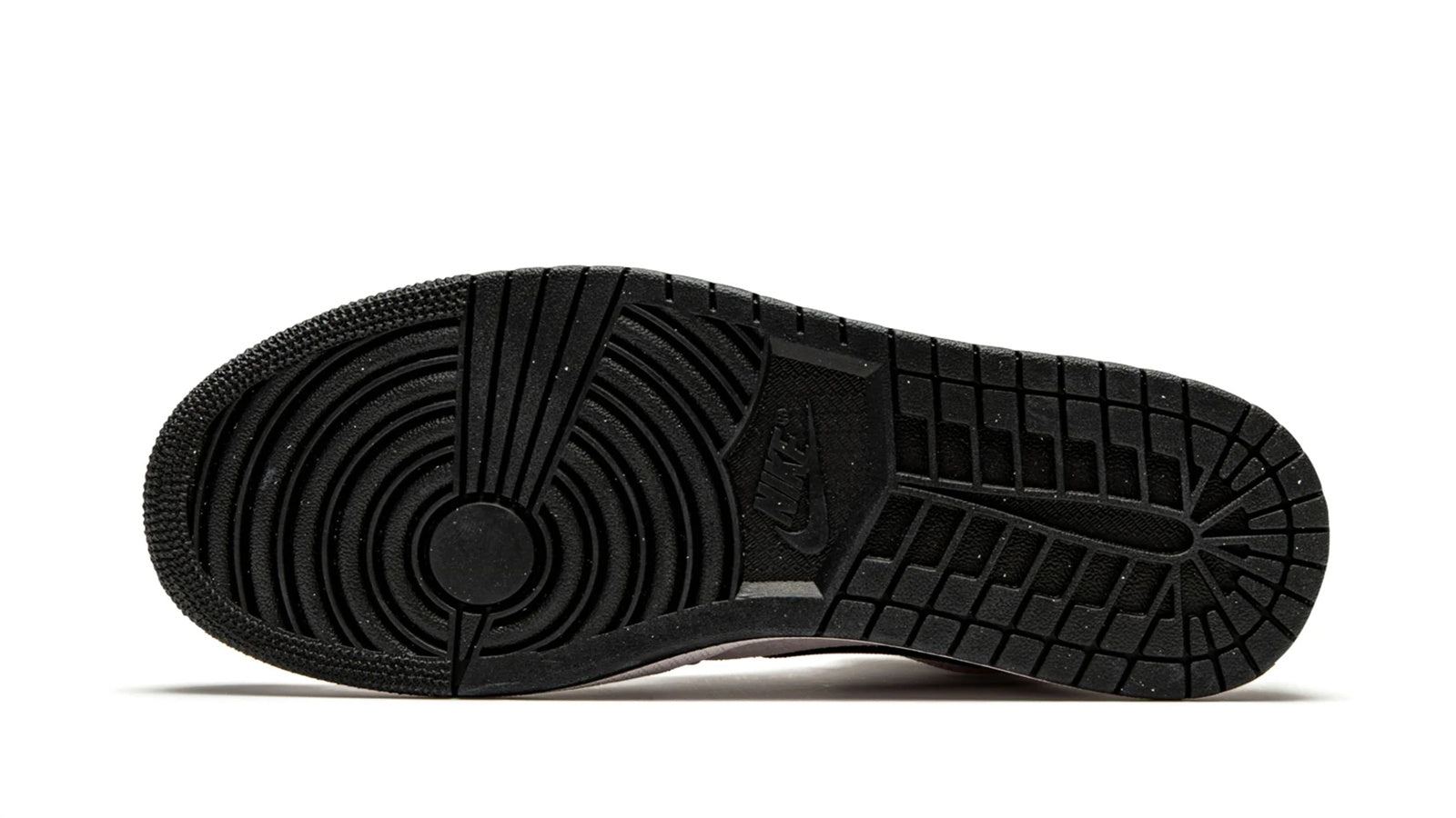 The Women's Jordan 1 Mid “Iridescent” is a flashy look for the women's sizing of Michael Jordan's first signature shoe in mid-top form. The unique appearance of the release can be attributed to the iridescent leather collar and heel which emits a reflective shine. Barely Rose suede covers the mid-panel. toe cap. and collar. A dotted black nylon Swoosh contrasts the mid-panel. Additional black nylon appears on the perforated toe and tongue. Jordan Brand finishes off the midsole in a tonal hue that syncs with the pale pink suede base of the shoe.