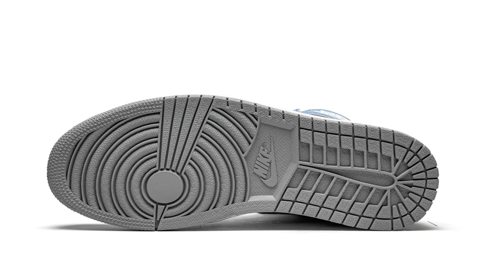 Blue/light grey/white leather Jordan 1 Retro High "Hyper Royal" sneakers from JORDAN featuring signature Jordan Wings logo. signature Swoosh logo detail. contrasting panel detail. round toe. front lace-up fastening. logo patch at the tongue. ankle-length and rubber sole.